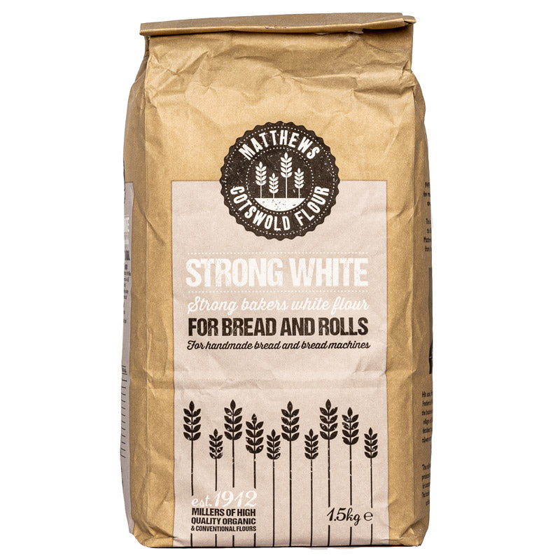 A strong white flour ensures the bread will rise, as the protein & gluten absorb the water, the dough becomes stretchy, trapping the carbon dioxide created by the fermenting yeast. As FWP Matthews strong white flour has a higher protein percentage than regular flour, it is known as a strong flour, giving more reliable results when making bread and bread rolls.