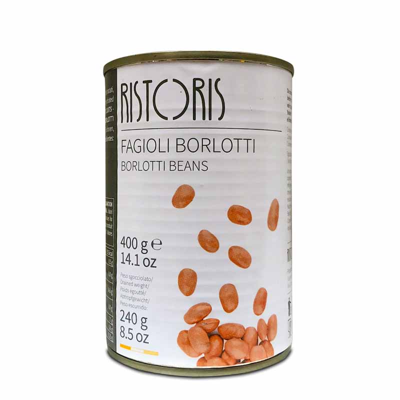 Ingredients: Rehydrated borlotti beans, water, salt.