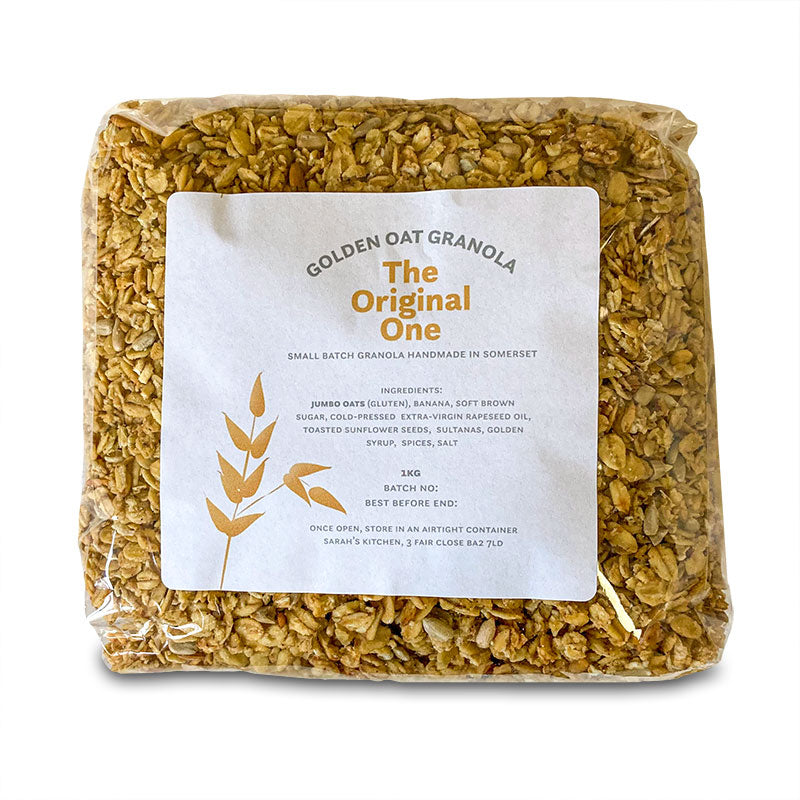 Ingredients: Jumbo oats, banana, soft brown sugar, cold pressed extra virgin rapeseed oil, toasted sunflower seeds, sultanas, golden syrup, spices, salt