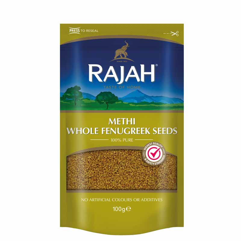 Rajah Methi Whole Fenugreek Seeds are have a strong tangy, bitter flavour that can be ground or roasted and added to a variety of dishes. It's one of the most well used spices in Indian cooking and a key ingredient in Garam Masala, but it's also prominent in Middle Eastern and North Africa cuisines. Dry roasting fenugreek seeds will reduce their bitter taste.